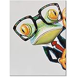 JAPO ART Handpainted Gentleman Frog Painting Funny Animal with Glasses Canvas Art Framed Frog Picture Wall Decor for Bedroom Bathroom Ready to Hang 24x32Inch