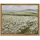 SHENIFY Vintage Landscape Framed Canvas Wall Art Countryside Flower Field Classic Paintings Farmhouse Kitchen Office Decor - 8x10in Natural Framed
