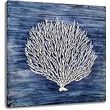 Yihui Arts Navy Blue Canvas Wall Art Hand Painted White Coral Painting Modern Abstract Tree Pictures Coastal Artwork for Bedroom Living Room Bathroom Decor